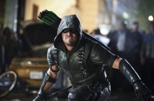 Il Green Arrow dell’Arrowverse, alias Oliver Queen, è il protagonista della serie televisiva Arrow e rappresenta il punto di partenza dell’universo narrativo condiviso delle serie DC prodotte da The CW. Interpretato da Stephen Amell, questo vigilante armato di arco e frecce propone una reinterpretazione più realistica e drammatica del celebre arciere dei fumetti pubblicati da DC Comics.
