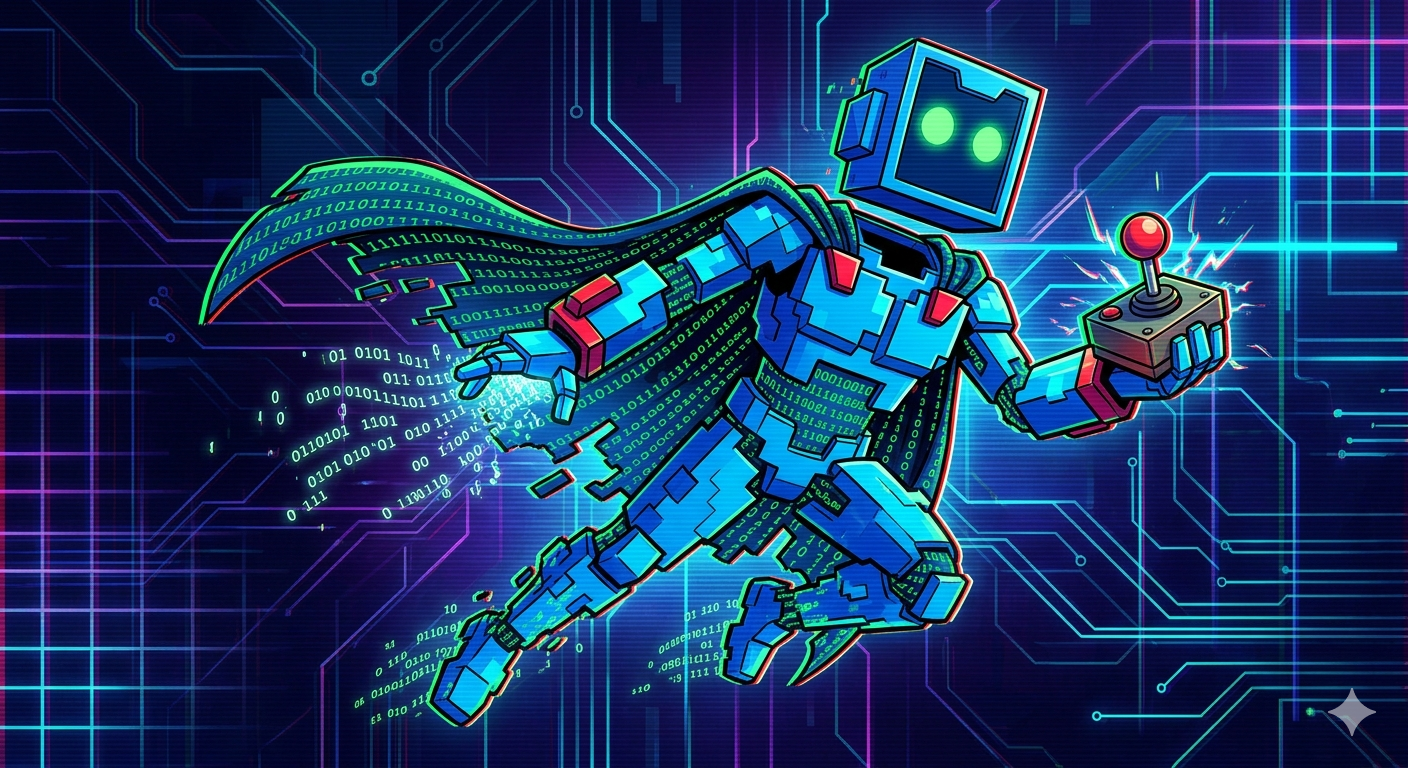 L’idea di X-Bazzolo è nata da un “Ghost in the Machine” durante lo sviluppo del CSS di Oltrecomics. Mentre ripulivamo il codice dai vecchi snippet, abbiamo immaginato un’entità che non appartiene a nessun albo stampato, ma che vive esclusivamente nei metadati dei fumetti digitali. È il “Collezionista di Glitch”: un personaggio errante che appare solo quando un file è corrotto o una pagina non viene trovata.